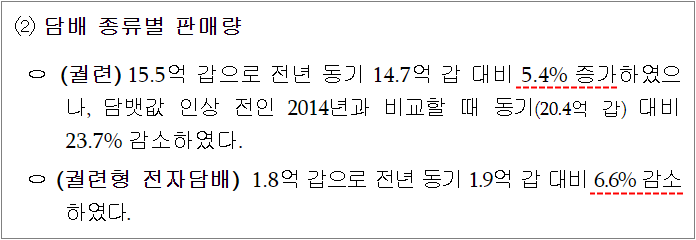 지난 5년간 담배 판매량은 큰 변화가 없다