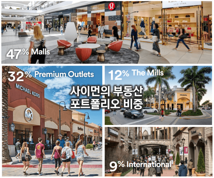 참고로 사이먼은 국내 부동산에도 투자하고 있습니다. 부산, 파주, 여주 그리고 시흥 프리미엄 아울렛도 사이먼이 운영하고 있는 부동산 자산입니다.