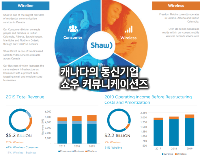 캐나다의 모바일, 인터넷 통신기업 쇼우 커뮤니케이션즈. 특이하게 뉴욕에서 월배당을 준다.