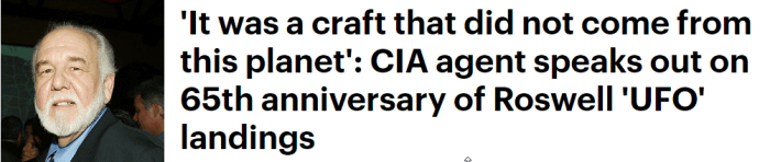 UFO 음모론자들은 1947년 7월 로스웰 지역에 외계인이 탄 비행물체가 추락했으며 미국 정부가 사건과 관련된 기록들을 철저히 은폐하고 통제하고 있다고 주장합니다. 그리고 이 의혹의 중심에는 미국 중앙정보국 CIA가 있습니다.