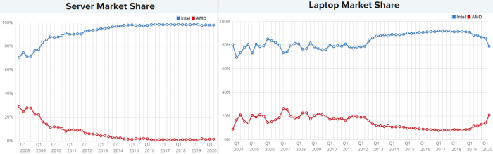 반면에 노트북 CPU 시장과 서버 CPU 시장은 인텔이 사실상 독점하고 있음을 알 수 있습니다. 아직까지는 말입니다.