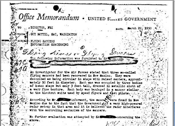 2011년 FBI의 로스웰 사건 조사 보고서가 세상에 공개됩니다. 1950년 작성된 이 보고서에는 당시 FBI 요원이 정보원으로부터 수집한 비행접시에 대한 증언이 담겨있습니다.