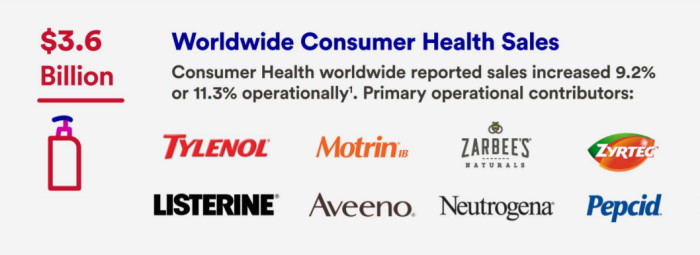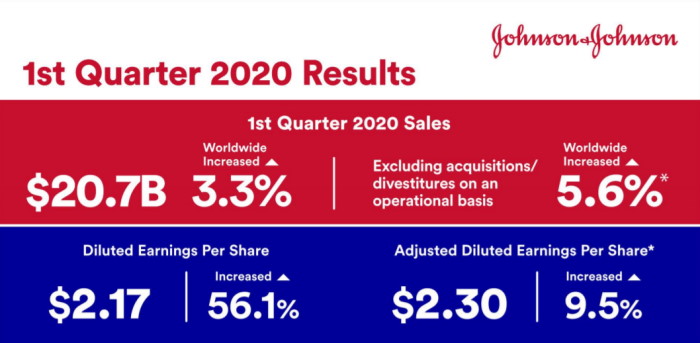 존슨앤존슨의 올해 1분기 매출은 전년 동기 대비 3.3% 증가했고, 순이익은 8.7% 그리고 주당 순이익 (EPS)도 9.5% 증가한 $2.3로 시장 기대치를 크게 상회했습니다. 의료장비 사업 부문은 다소 부진했지만, 소비재 의약품 판매와 제약 사업 부문의 매출이 10% 가까이 증가했다고 발표했습니다. 팬데믹 와중에 타이레놀과 같은 처방전 없이 구입할 수 있는 일반 의약품의 매출이 두자릿수 가까이 증가했다고 합니다.
