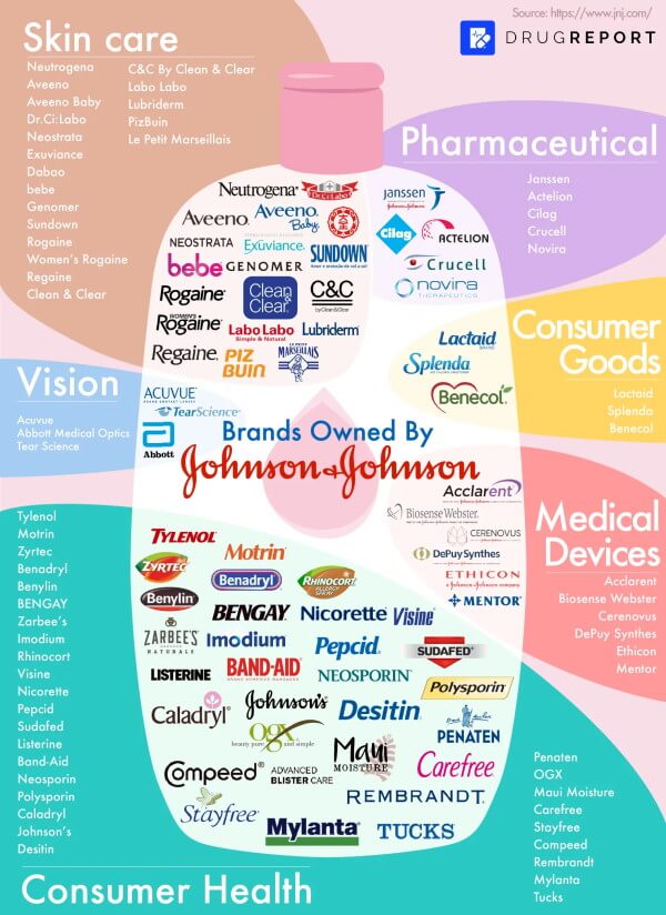 이 중에서 일반 소비재 판매 사업 부문은 우리에게 굉장히 익숙한 브랜드들이 대거 포진되어 있습니다. 타이레놀, 지르텍과 같은 일반 의약품에서부터 뉴트로지나, 클린앤클리어, 존슨즈 베이비 로션과 같은 화장품. 니조랄, 리스테린, 아큐브 랜즈까지 주위를 조금만 둘러보면 어디서나 존슨앤존슨 (Johnson & Johnson) 브랜드를 쉽게 찾을 수 있습니다.